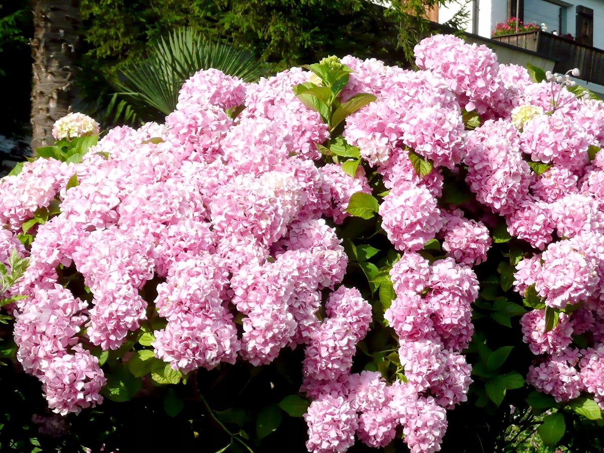 - Barwa kwiatów: różowa (intensywność koloru zależna od pH gleby)